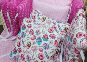 Новые бортики в кроватку, 12 шт, ручная работа. Ткань бязь, наполнитель гипоаллергенный холлофайбер, репсовые ленты.