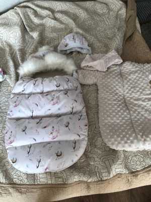 Продается красивый комплект на выписку демисезонный 3 в 1 весна-осень,от 0 до 3 месяцев для девочки барашек,внутри хлопковый...