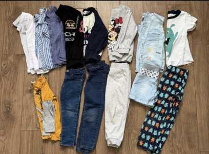 шапка,бейсболка,3 футболки ,одна светится ,новые носки ,джинсы,рубашка,белье 3 шт на 7-8 лет ПАКЕТОМ