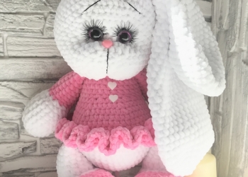 Вязаная зайка подарит радость вам и вашим детям. Подходит и для самых маленьких детей.