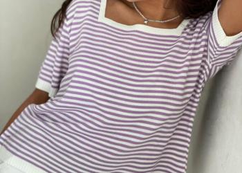 Джемпер с вырезом в сиреневую полоску Джемпер с короткими рукавами в тонкую полоску.