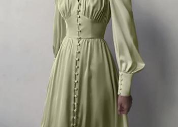 Фисташкового цвета нежное ажурное платье