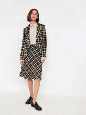 Юбка коричневая ,тёплая, с рисунком в ёлочку. Новая. С подкладкой . Сзади на молнии.