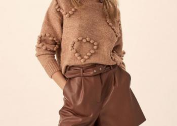 Стильные и удобные женские шорты из экокожи коричневого цвета, размер 44.