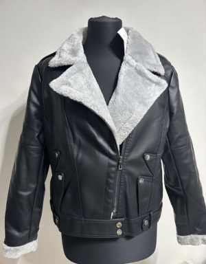 Кожаная куртка бренда из искусственной кожи черного цвета. Новая, с бирками. Подходит на размер 44-46 (S/M).