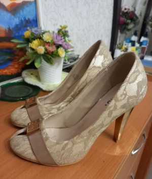 Туфли на высоком каблуке-шпилька, 38 размер. Обшить гипюром, нарядные