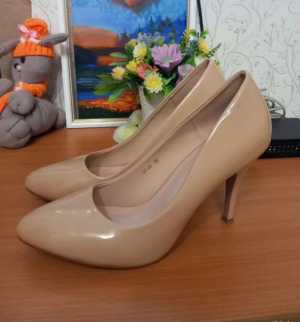 Туфли на каблуке-шпилька, 38 размер. Лакированные, в хорошем состоянии. Бежевые