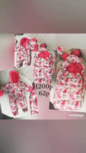 Ярко-розовый комбинезон с теплый конвертом для маленькой принцессы! Состояние отличное! на возраст 2-4 мес.
