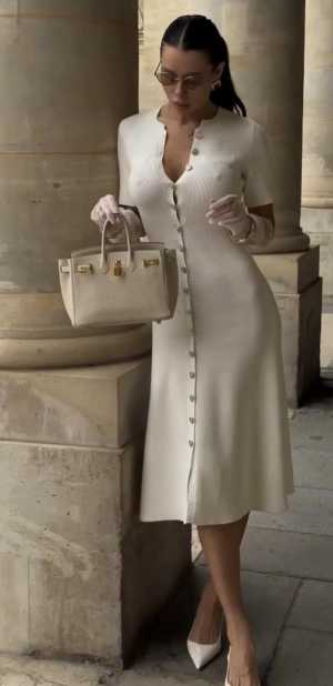 Потрясающее белое платье с пуговицами в цвете золото. Обхват груди: 92 см. Талия: 70 см. Длина: 108 см.
