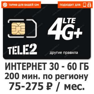 Тарифы Теле2 со скидкой 50%! 60Гб 200 минут/СМС 75-275 руб/мес По вопросам сотрудничества пишите в сообщении