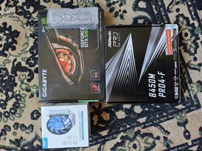 Продаю комплект материнская плата, видеокарта, процессор, куллер, оперативная память, блок питания.