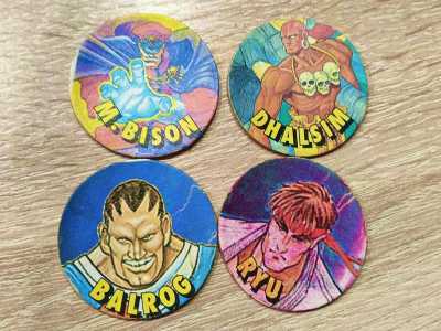 Фишки (кэпсы) по игре street fighter ||. Фишки: M.BISON, BALROG, DHALSIM, RYU. Состояние: хорошее, немного потёртые.