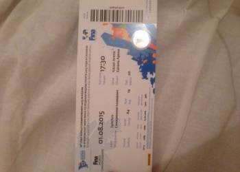продаю билет на FINA синхронное плавание финал. на 01.08.2015. отдаю по себестоимости 1500р. 14 ряд 20 место. Место хорошее!