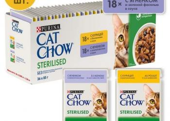 Продаю Влажный корм для кошек Cat Chow Sterilised мультипак с курицей, ягненком 85 г х 36 шт. Бесплатная доставка по Казани.
