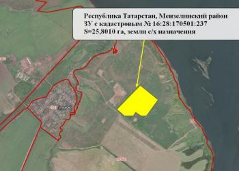 Земельный участок к.н.16:28:170501:237, общей площадью 25,801 га., земли с/х назначения, расположен в Мензелинском районе РТ.