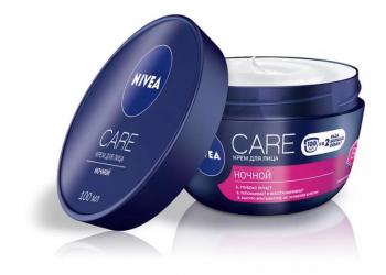 Ночной крем Nivea, который подходит для всех типов кожи, активными ингредиентами которого являются: глицерин, пантенол...