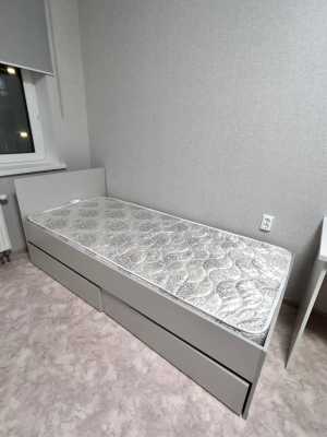 2 шкафа с штанками и выдвижными полками, кровать с 3 выдвижными ящиками и матрасом, письменный стол.